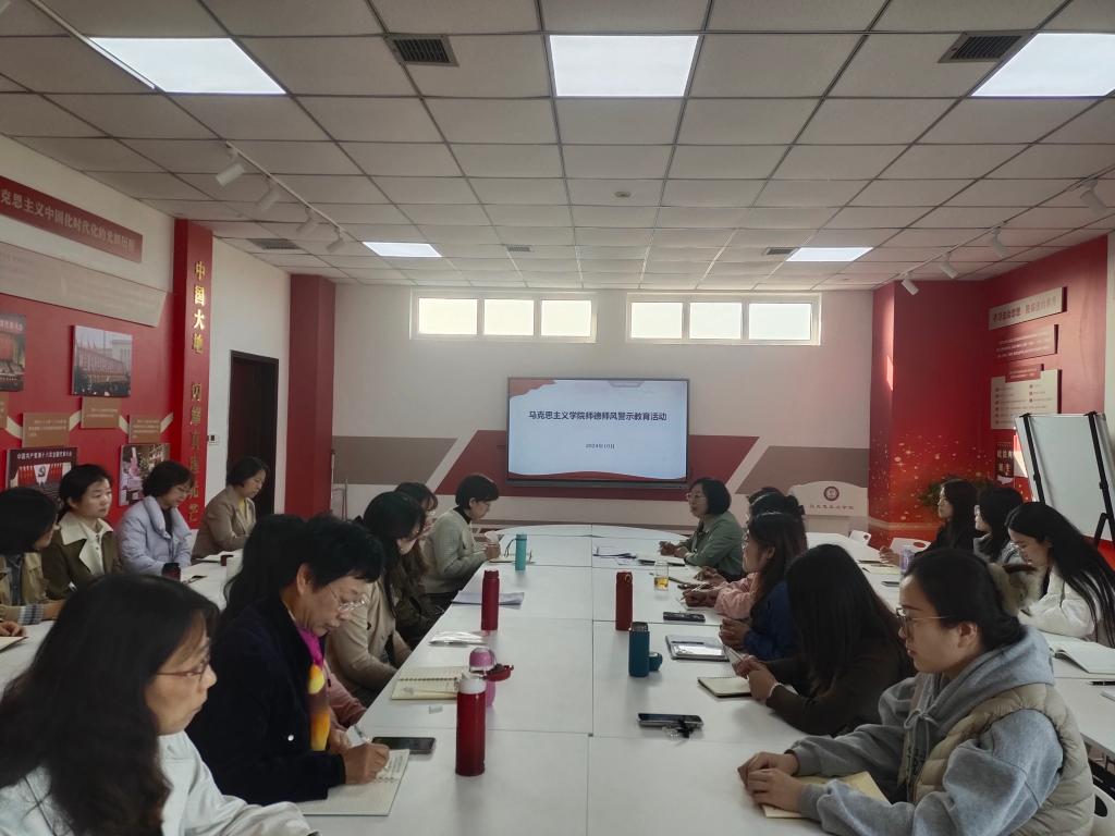 会上,全体教师共同观看了师德师风警示教育片《2023年“依法规范执教”师德警示教育——师德失范典型案例(高校篇)》,并集体学习了《新时代高校教师职业行为十项准则》。随后党总支副书记常满荣对全体教师提出了三点要求。一要提高对师德师风建设重要性的认识,从严执教、依法执教;二要加强政治理论学习,提高政治素养,用习近平新时代中国特色社会主义思想武装头脑,全面贯彻党的教育方针,立德树人,为党育人,为国育才;三要具备底线思维和红线意识,严格自律,自觉遵守教师职业道德规范;四要关爱员工,努力做员工的良师益友。