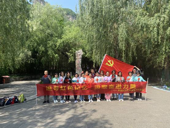 为庆祝中国共产党成立100周年,提升支部凝聚力,激发党员活力,加强党员队伍建设, 2021年5月21日下午,思想政治理论教学部党支部全体党员在支部书记张小兰的带领下,赴平山沕沕水爱国主义教育基地开展了以“追寻红色记忆,汲取奋进力量”为主题的党日教育活动。