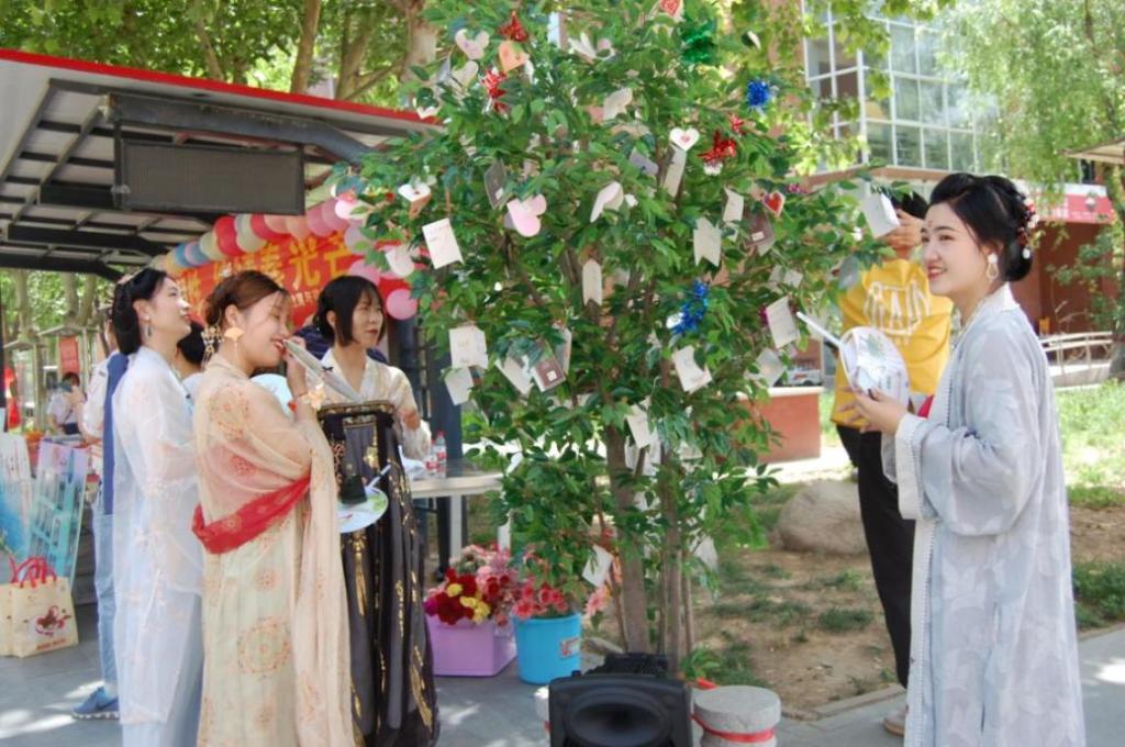 5月24日,在校本部和北院同时举办了“5·25”主题日现场活动。此次活动打破原有单一的纸质材料宣传模式,现场向前来参加活动的师生发放心理健康教育与心理咨询中心设计的宣传扇,既实用又改善了心理宣传以往的“刻板印象”;教学楼到活动现场路两旁布置鲜花、彩带、气球,营造如花般的青春气息;同时进行了现场心理测试、心理咨询、“磨砺生命韧性 绽放青春光芒”大型签名活动;现场心愿树寄语、宿舍文化衫展示、身着汉服员工赠送鲜花等互动环节,员工写下内心的梦想以及心情,帮助员工表达对未来的期待,鼓励员工展现自我、分享自我,吸引了众多师生参与。
